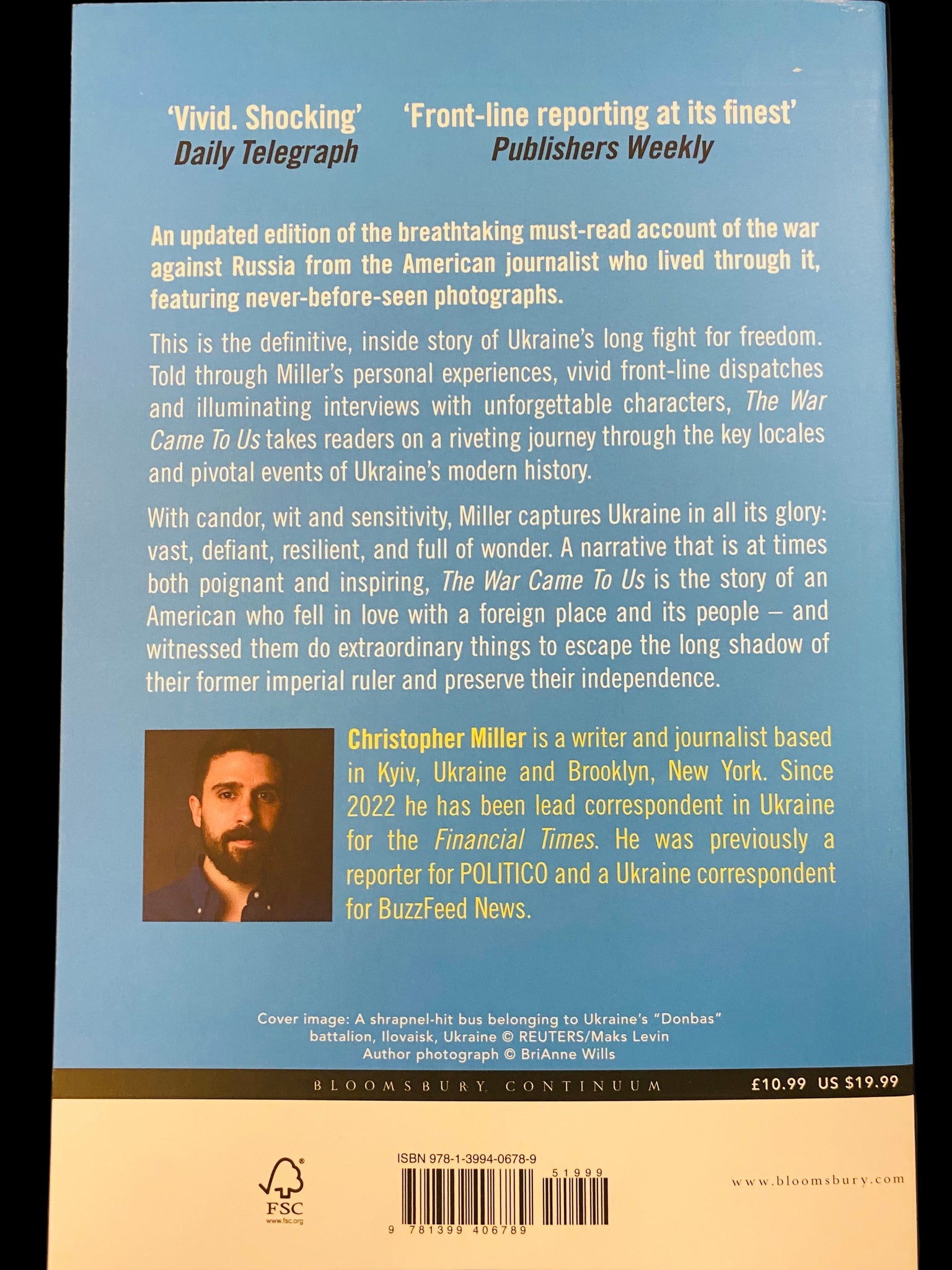 This is the definitive, inside story of Ukraine's long fight for freedom. Told thru Miller's personal experience, vivid front-line dispatches and illuminating interviews with unforgettable characters, The War came to Us takes readers on a riveting journey through the key locales and pivotal events of Ukraine's modern history.