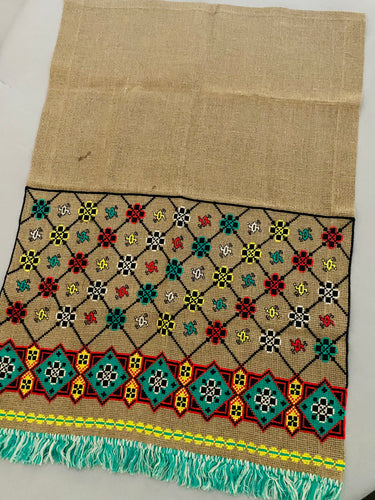 Burlap embroidered Vintage runner 39" x 26 1/2"