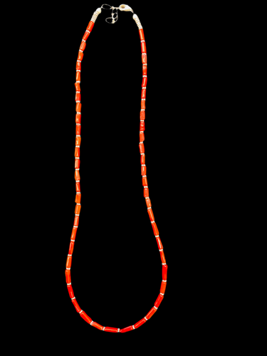 Nina Lapchyk 18” smooth cut coral tubes necklace with silver spacers # 16