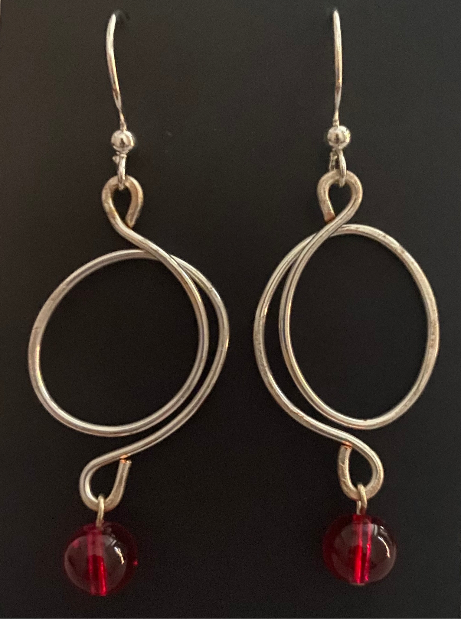 Ukrainian artist Tania Snihur handcrafted a variety of pierced earrings on silver filled wires using semi precious stones such as coral,amber, garnet ,and many are beautifully twisted to form unique sculptural shapes.