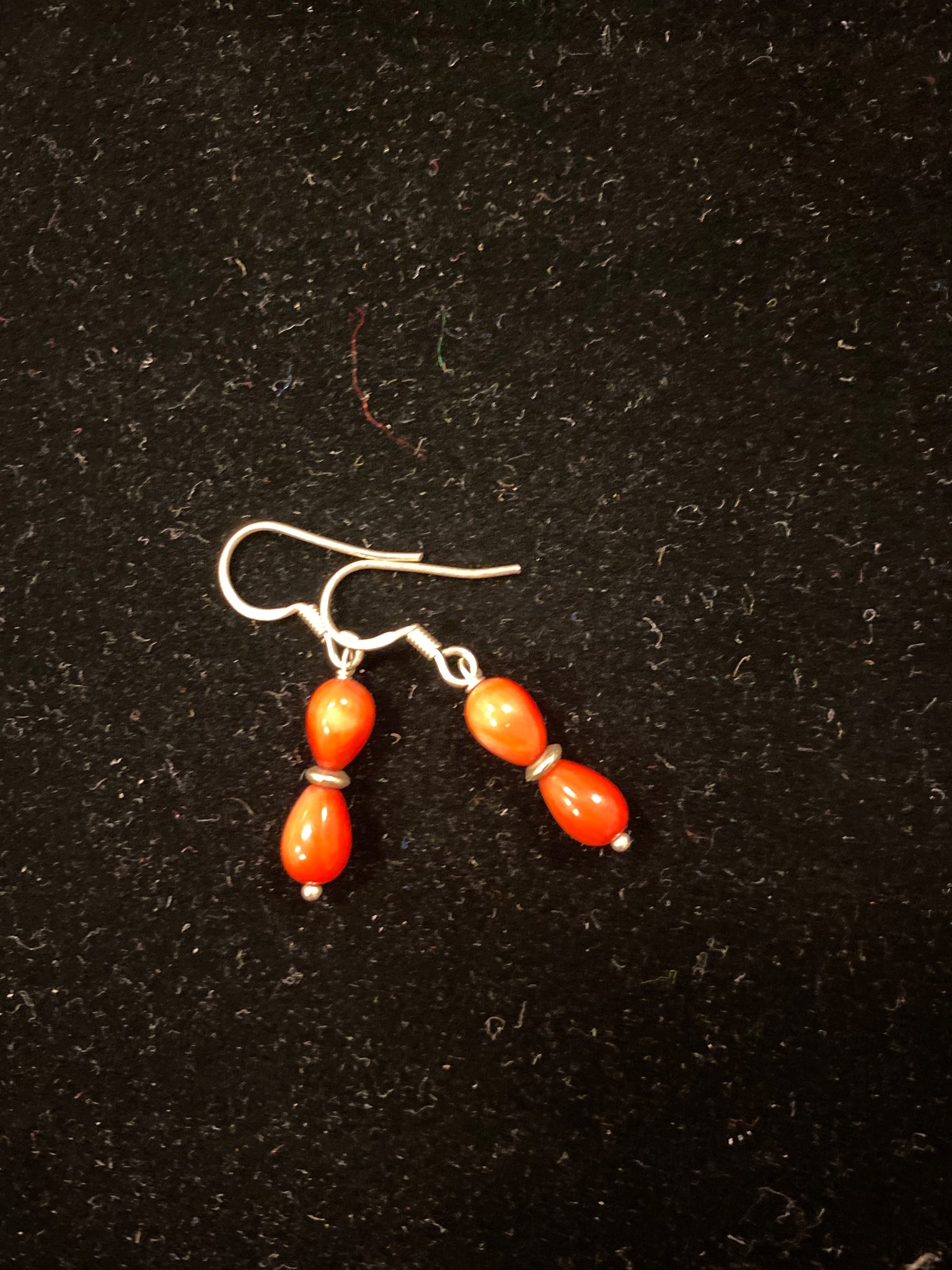 Artist Nina Lapchyk handcrafted a variety  of coral earrings on sterling silver wires . Each pair priced at $15.00