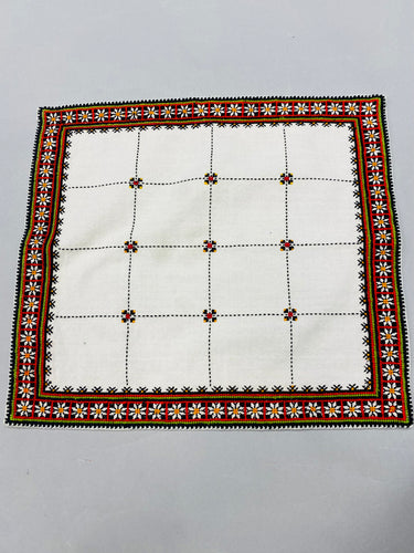 Embroidered Vintage Natural Servetka with multi embroidery around border