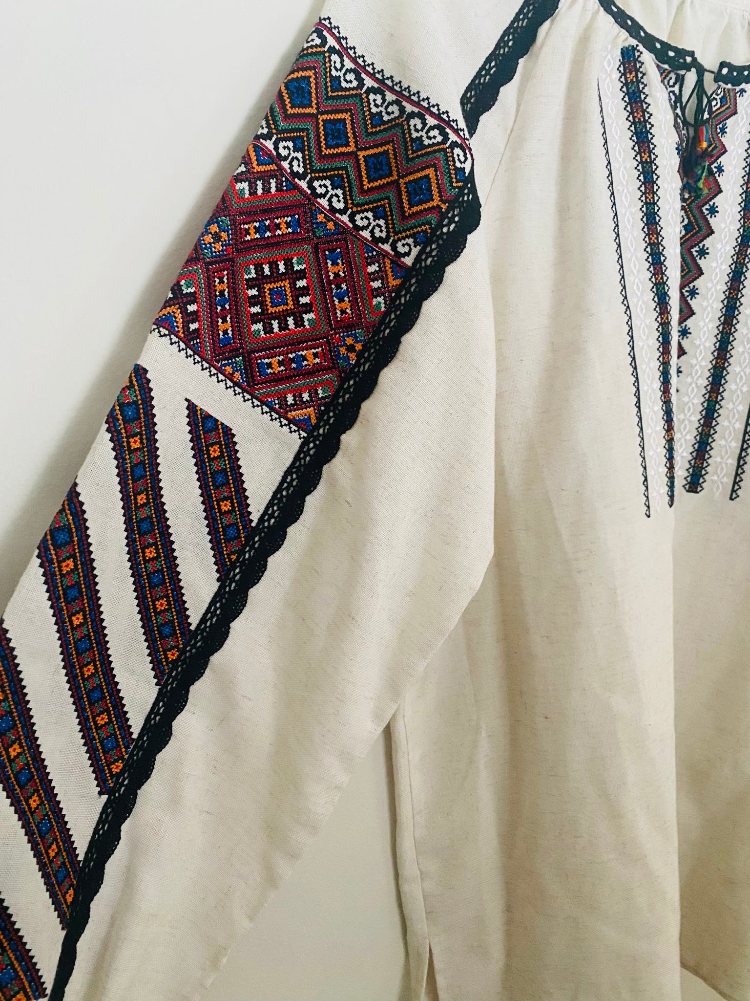 Women's embroidered vyshyvanka ,beautiful cross stitch embroidery in multicolor on front bodice and full on sleeves. Very unique .Machine embroidered .Made in Ukraine,